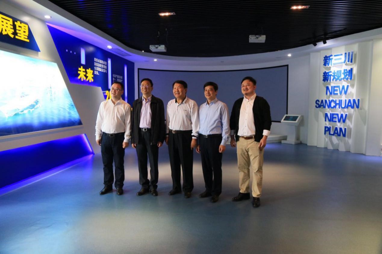 李强祖总经理与各位领导合影留念(从左至右,依次为高华主任、周瑛书记、王建章主任、李卫国主任、李强祖总经理)
